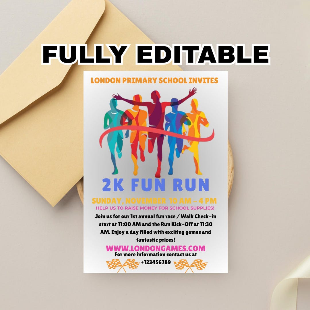 Fun Run Invitation, School or Charity Fundraiser Race Flyer, Editable ...