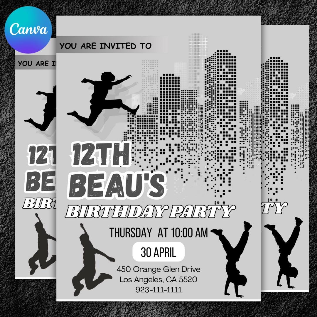 Parkour for Beau Theme Birthday Party Invitation Template, Free Running ...