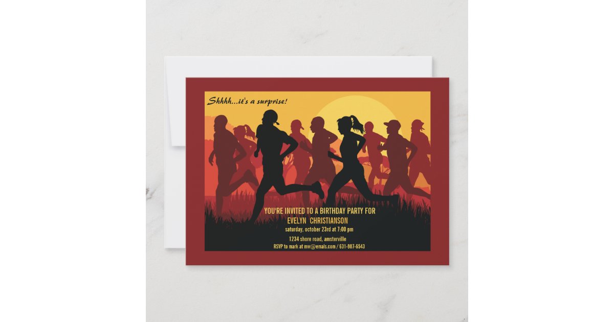 Running Marathon Runner Birthday Party Invitation | Zazzle.com