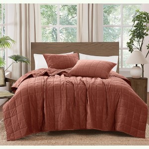 Brooklyn Loom Matte Cotton Velvet Box Stitch 3 Piece Rust King Quilt ...