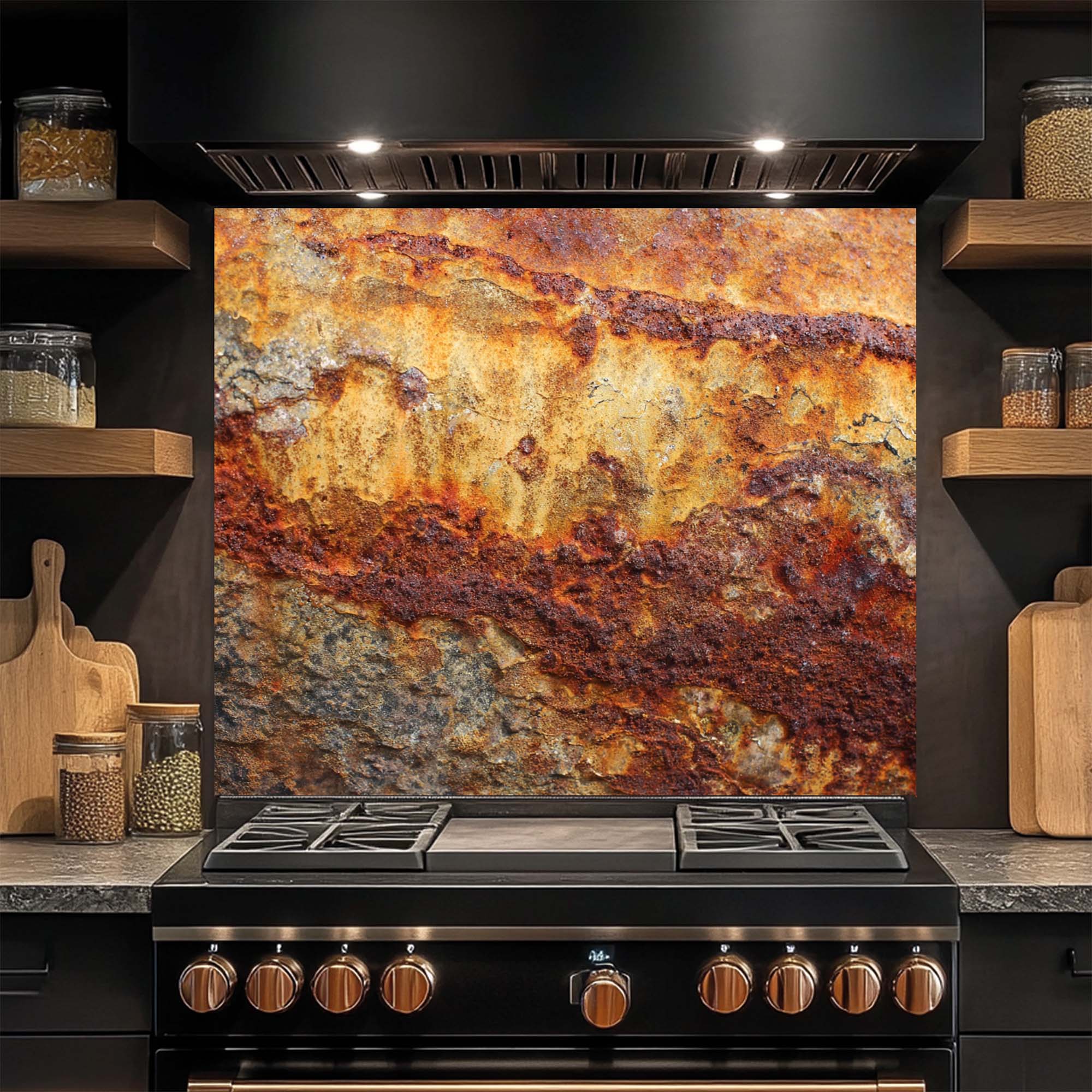 Rust Flow – Tempered Glass Backsplash with Industrial Abstract Texture ...