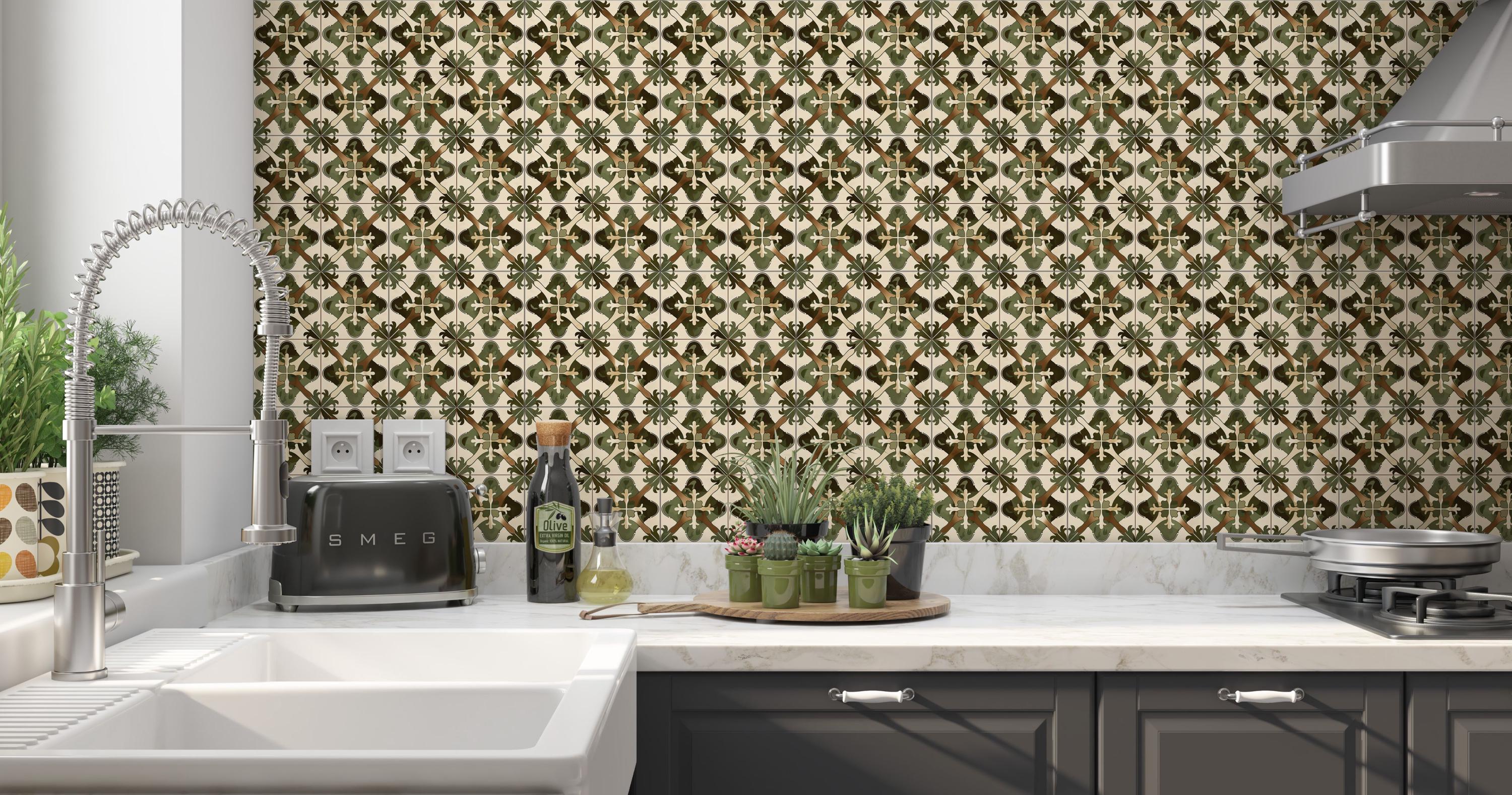 Green Rust Cream Backsplash Tile Vintage Moroccan Tile Design Kitchen ...