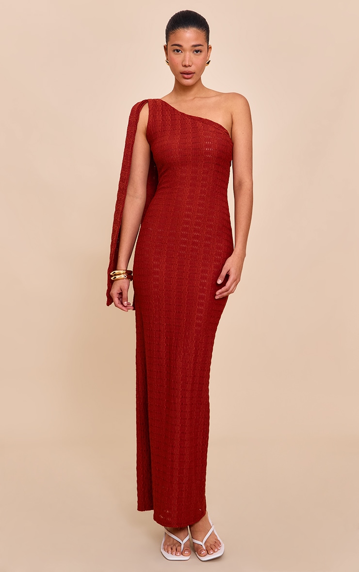 Rust Textured One Shoulder Drape Detail Maxi Dress | Dresses ...