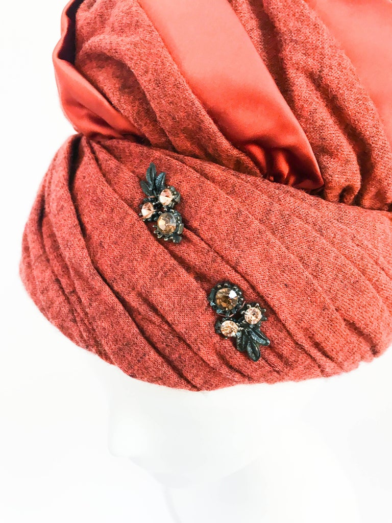 1960s Rust Jersey and Satin Turban with Rhinestone Embellishment For ...