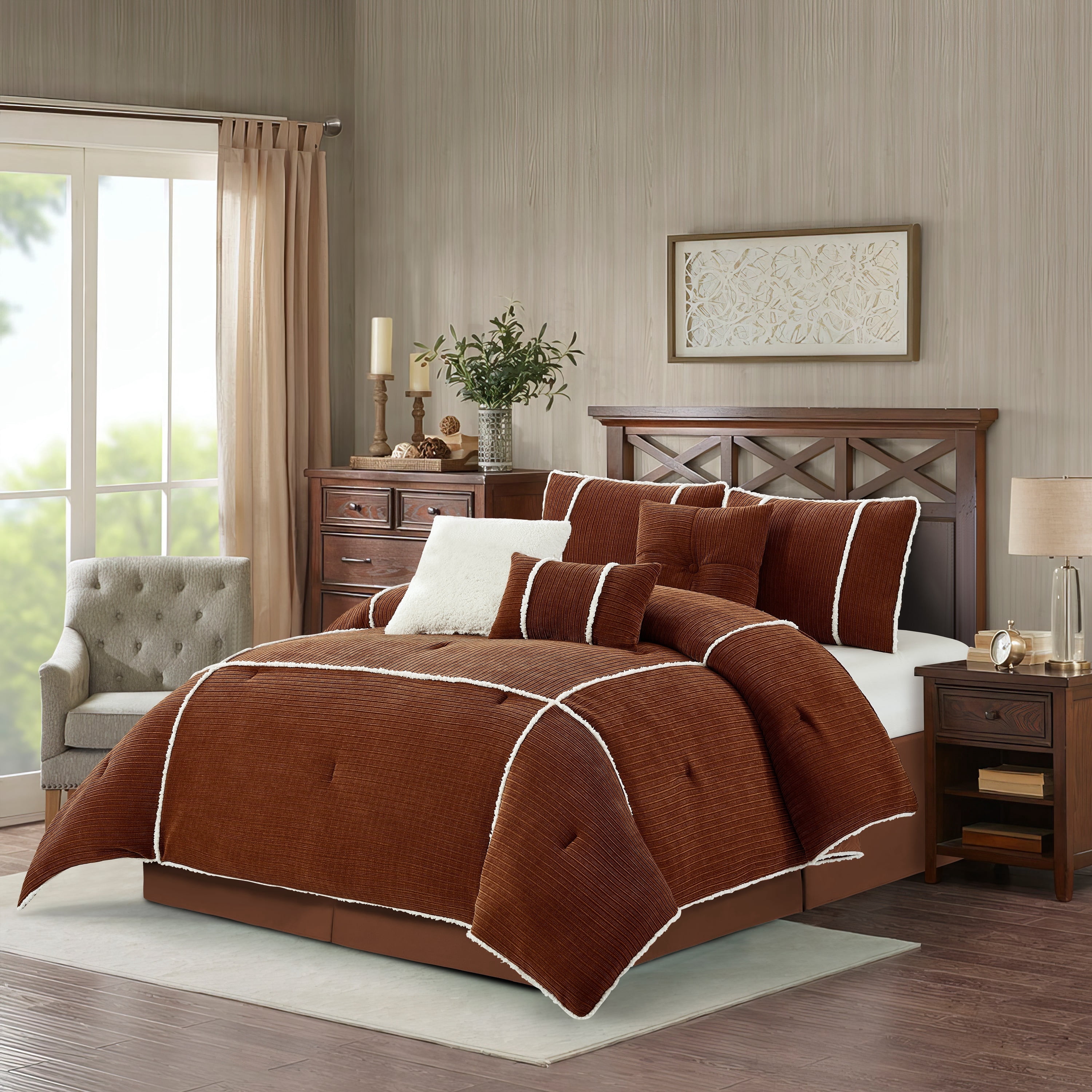 Lanco 7 Piece Rust Comforter Set , California King Size Corduroy ...