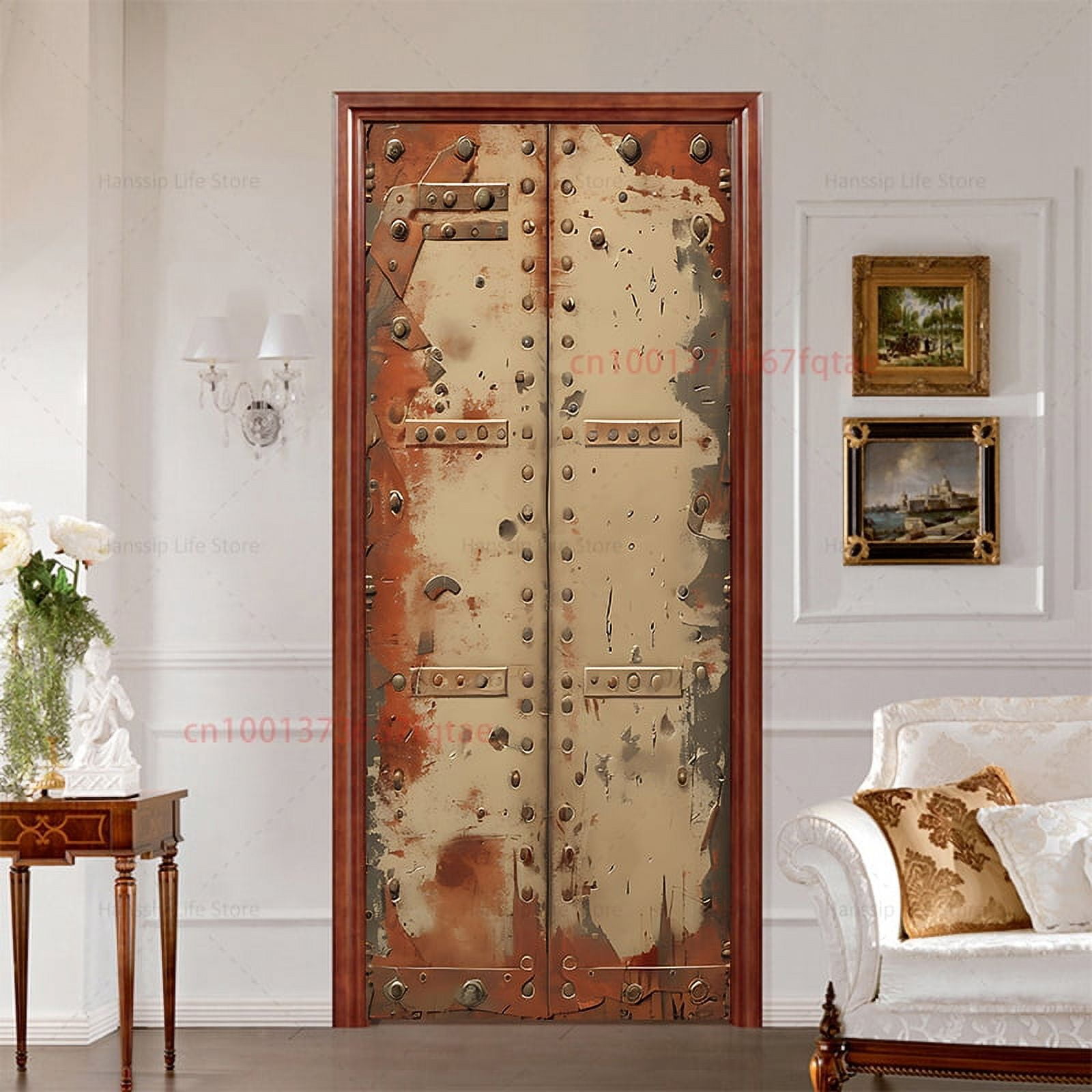 Retro Rust Art Door Sticker 3D Stereo Realistic Wall Sticker Mural PVC ...