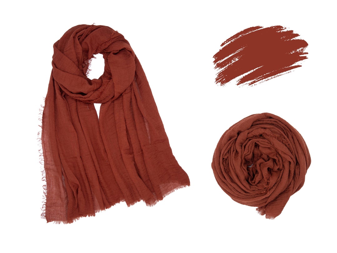 Rust Head Scarf, Natural Warm Long Soft Red Cotton Shawl, Breathable ...