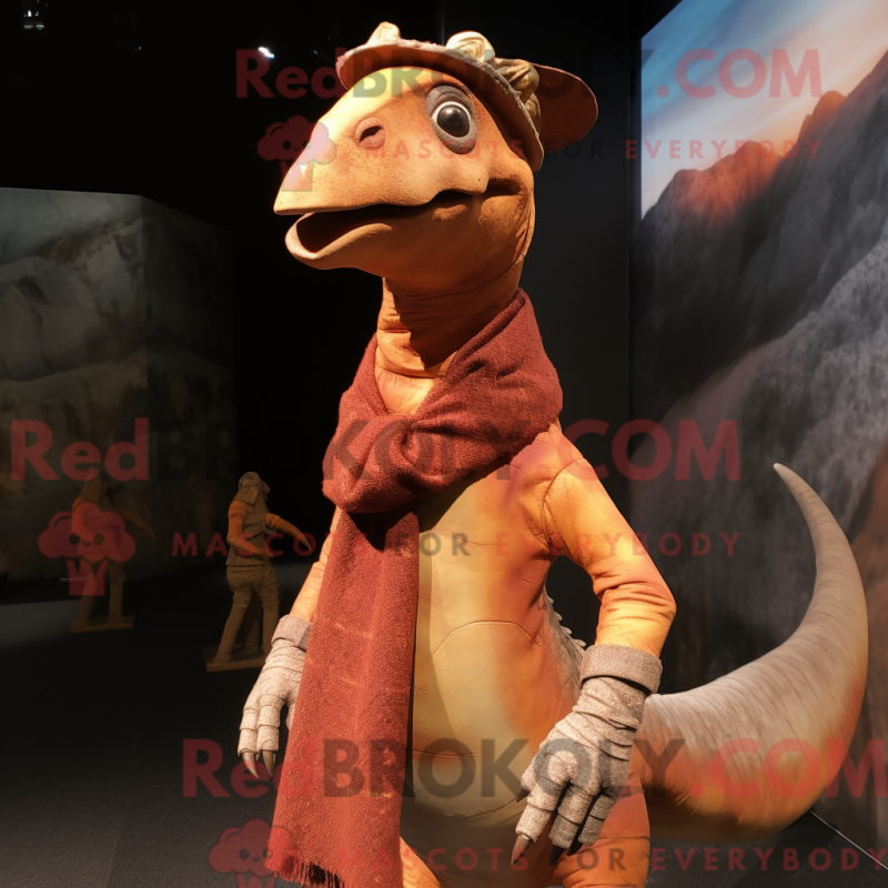 Rust Diplodocus mascot costume character dressed with a Turtleneck and ...