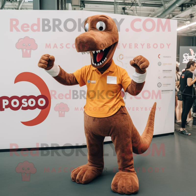 Rust Allosaurus mascot costume character dressed with a Polo Shirt and ...