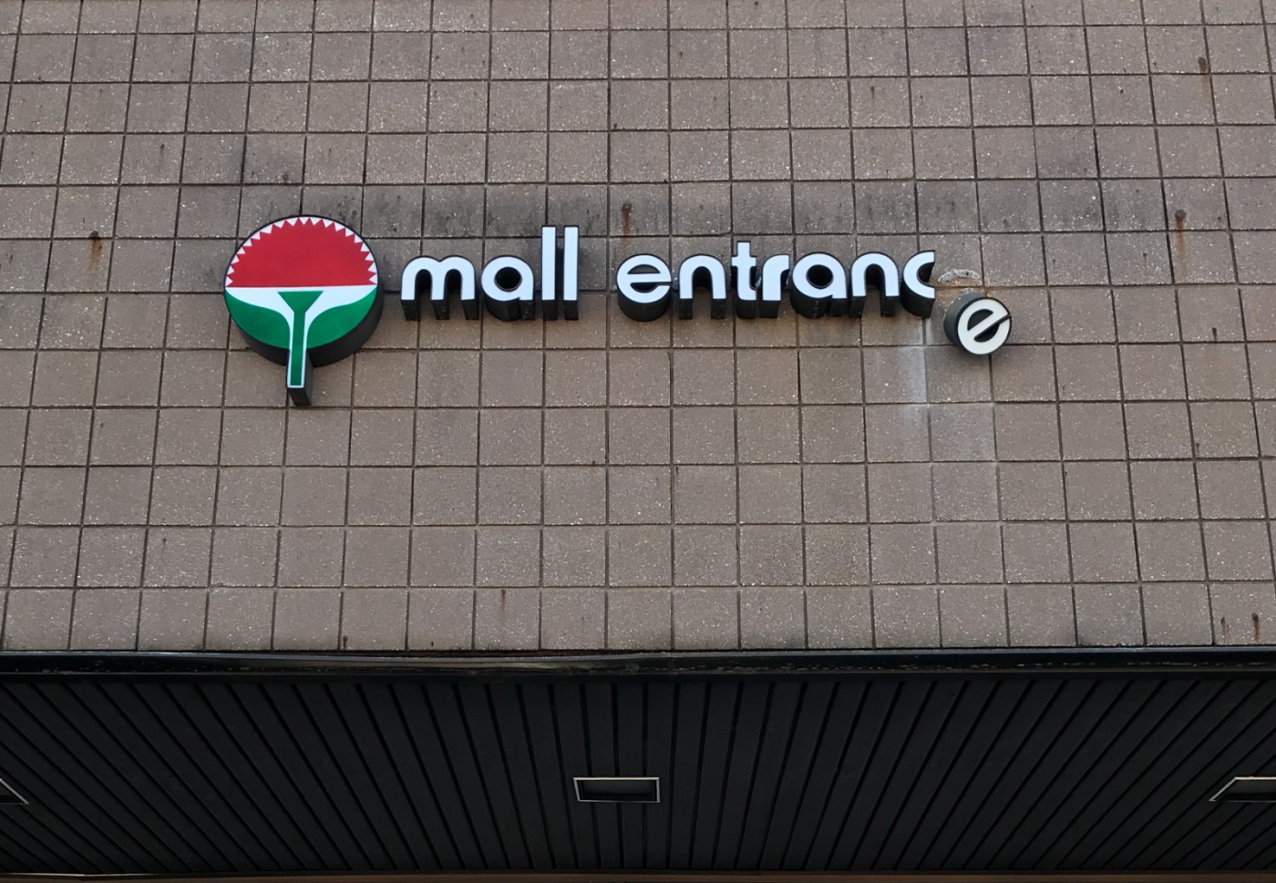 The wall surface of the shopping mall outside the building has a ...