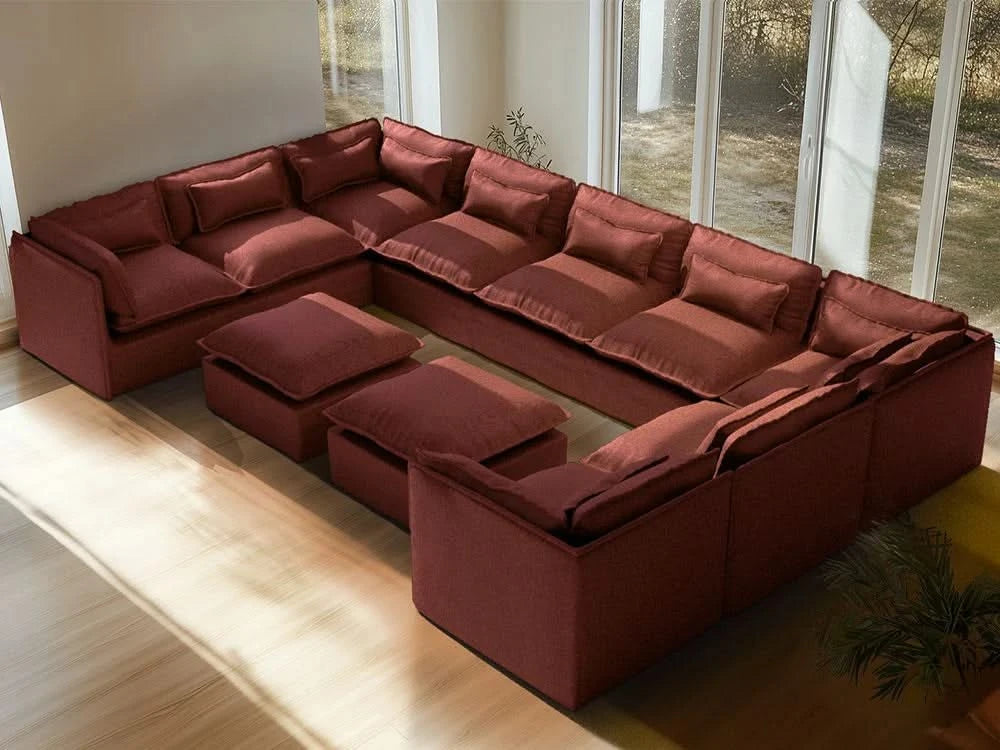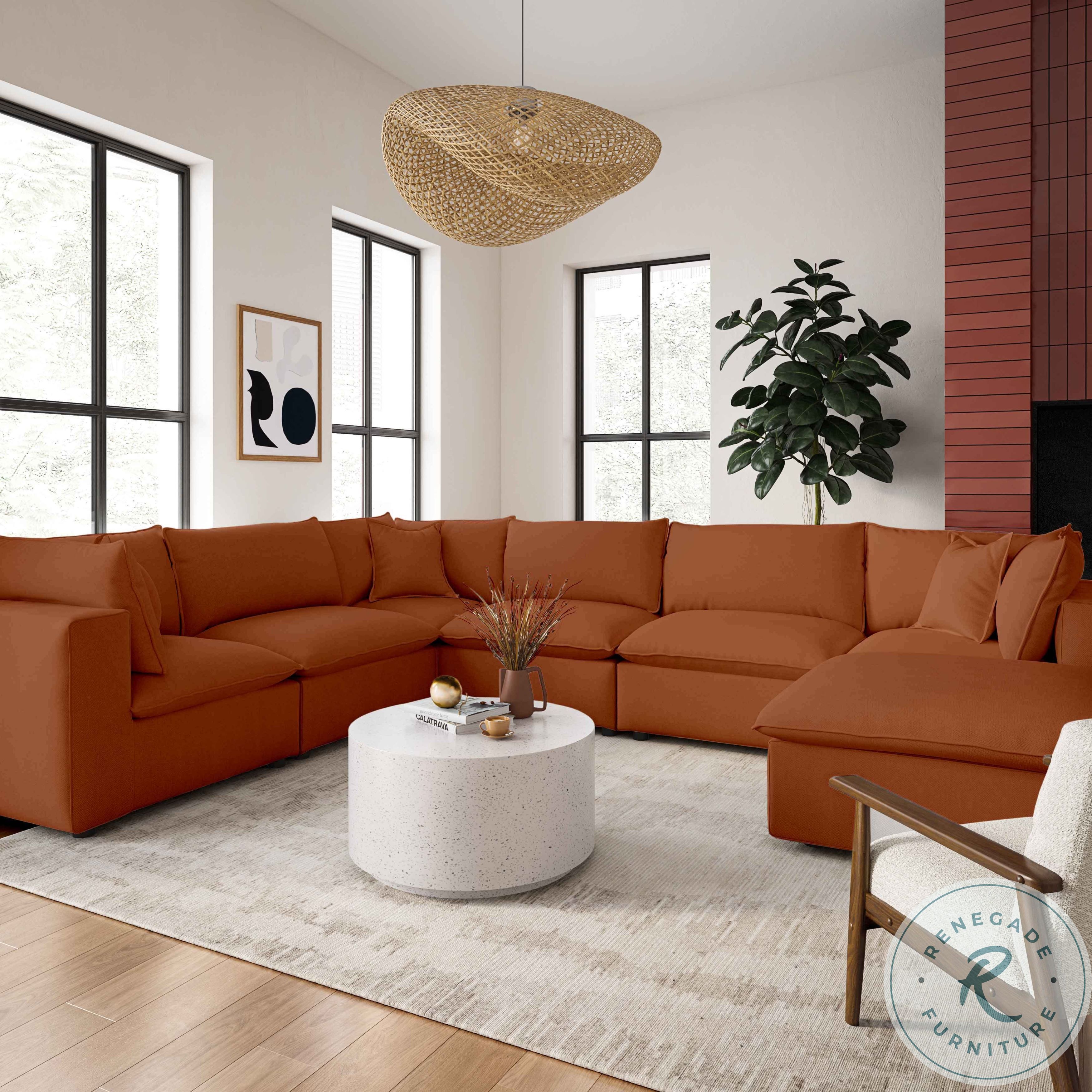 Modular Washable 6-Seater U-Sectional in Rust | Deluxe+ Seat | Cloud P ...