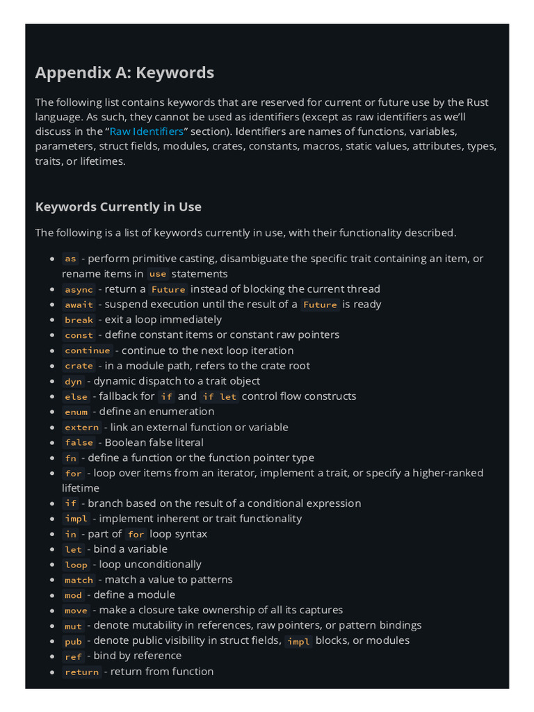 Appendix A - Keywords - The Rust Programming Language | PDF | Control ...