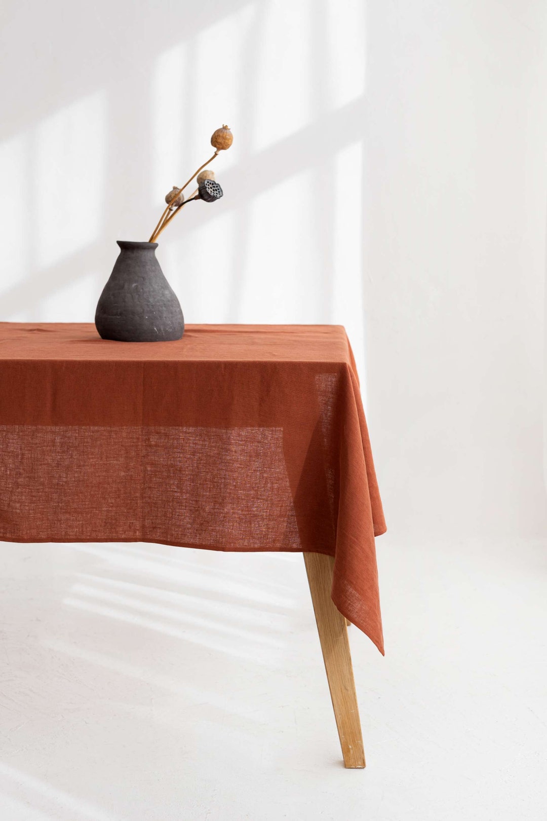 READY TO SHIP - Softened Linen Tablecloth, Rust Linen Tablecloth ...