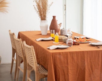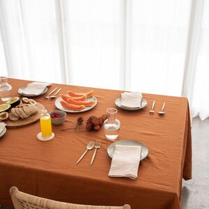 Terracotta burnt Orange Linen Tablecloth Kitchen, Dining Table Cover ...