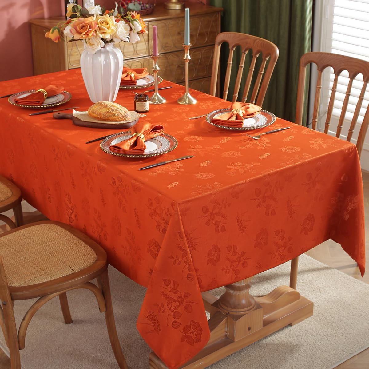 SiinvdaBZX Damask Rectangle Tablecloth, Luxury Jacquard Design Rust ...