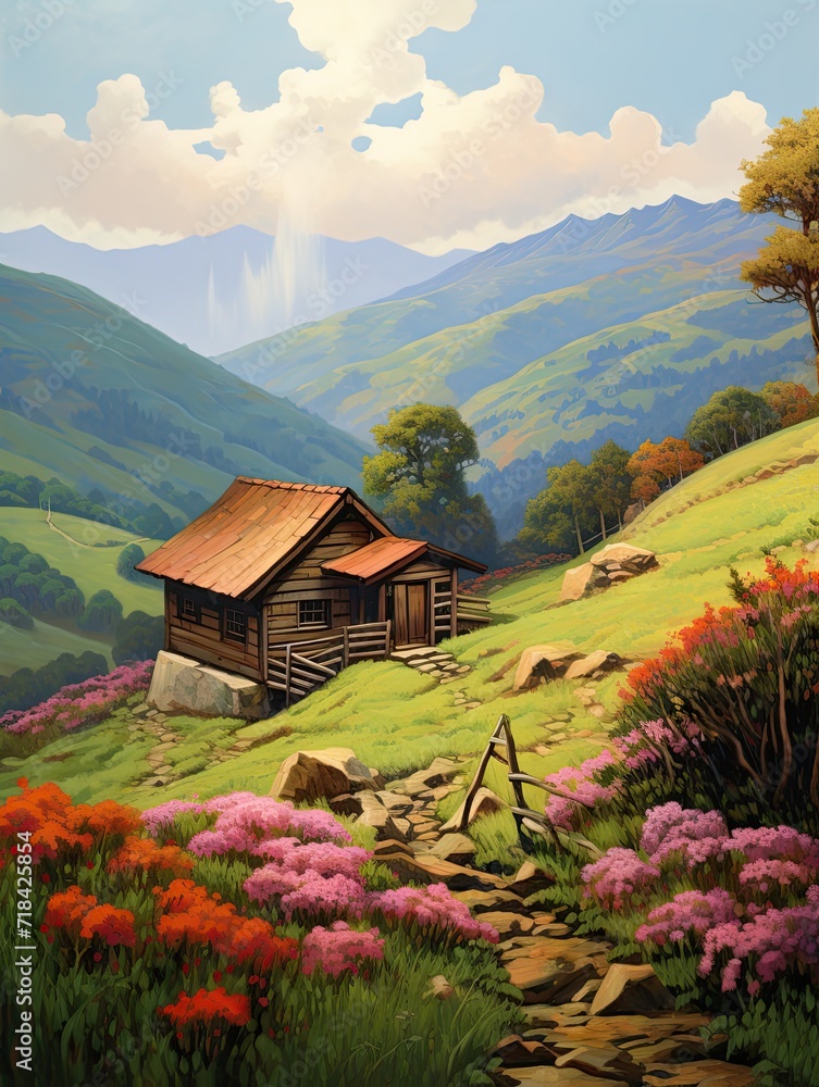 Rustic Appalachian Cabins: Rolling Hills Landscape Art featuring a ...