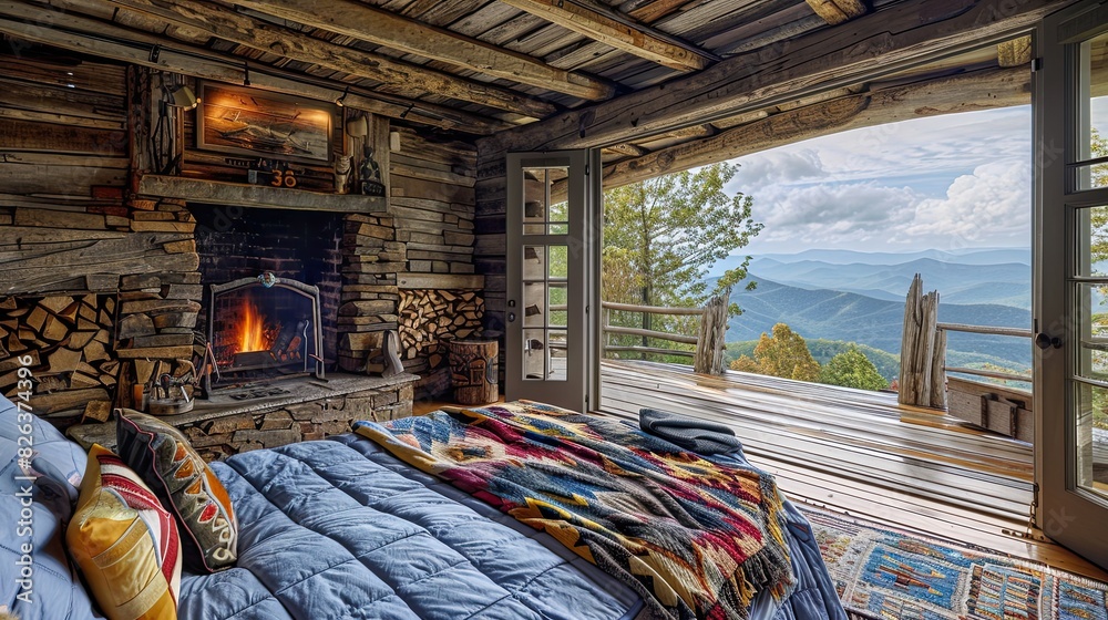 bedroom with a rustic Appalachian trail cabin theme, including hand ...
