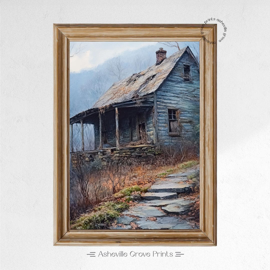 Rustic Appalachian Farmhouse Oil Painting - Vintage Wall Art, Moody ...