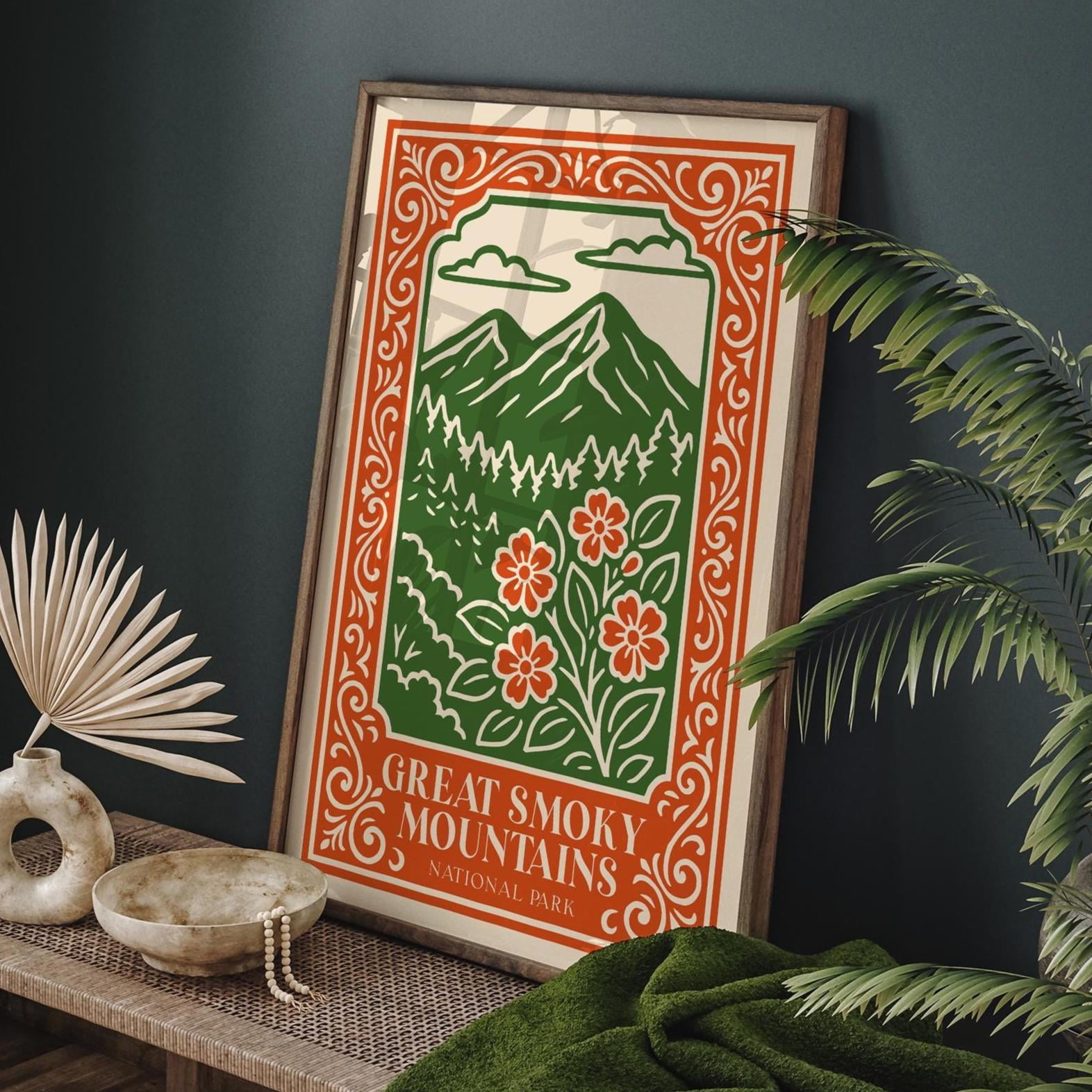 Great Smoky Mountains National Park Poster, Orange And Green Nature ...