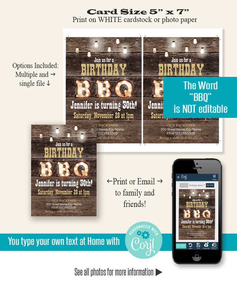 Rustic BBQ Party Invitation Printable Editable Template - Etsy