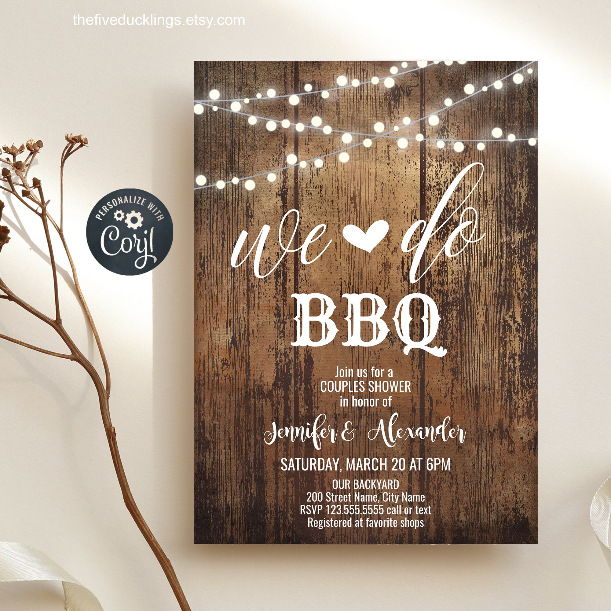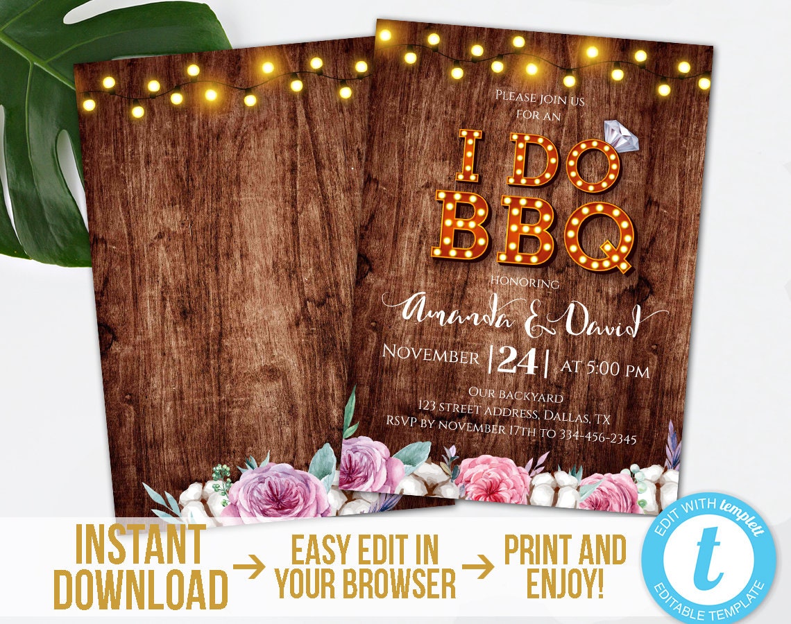 Editable I Do BBQ Invitation Invite Engagement Party Rustic Barbecue ...