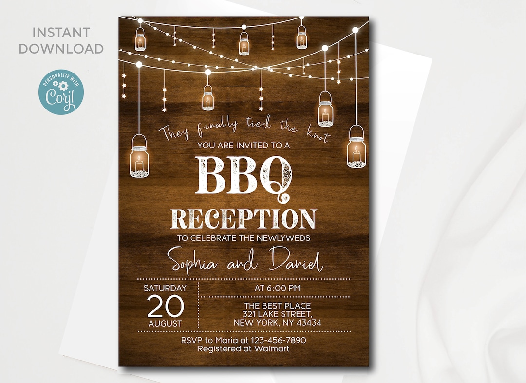 Rustic BBQ Wedding Reception Invitation Template (digital Download) - Etsy