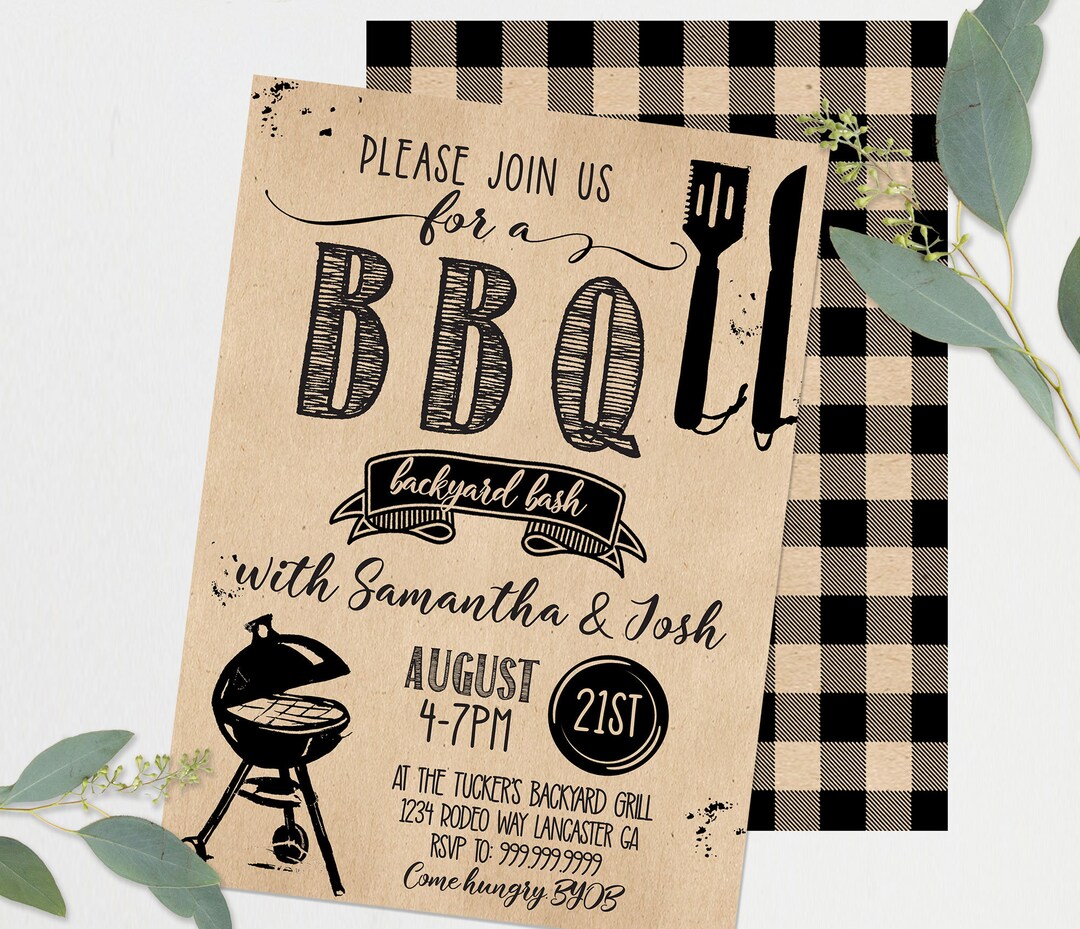 Birthday BBQ Invitation, Rustic Birthday Invitation, BBQ Party ...