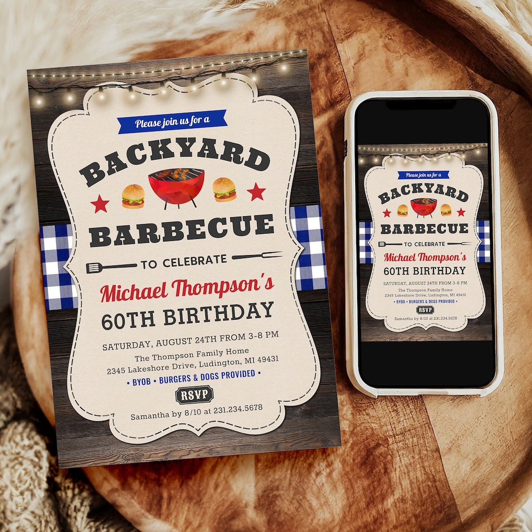60th BBQ Birthday Invite - Summer Backyard Barbecue Party Invitation ...