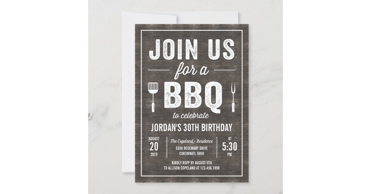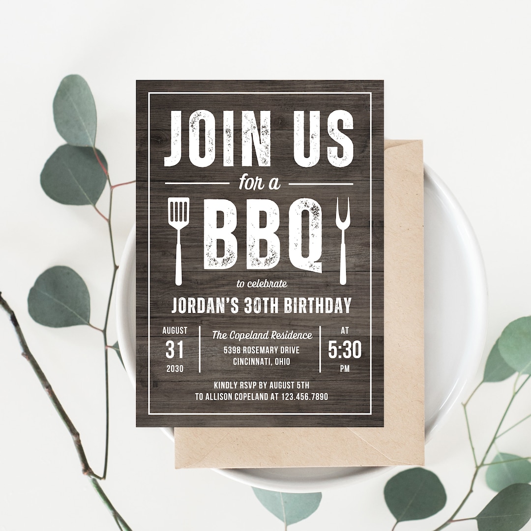 Rustic BBQ Birthday Invitation Backyard Bbq Adult Bbq - Etsy