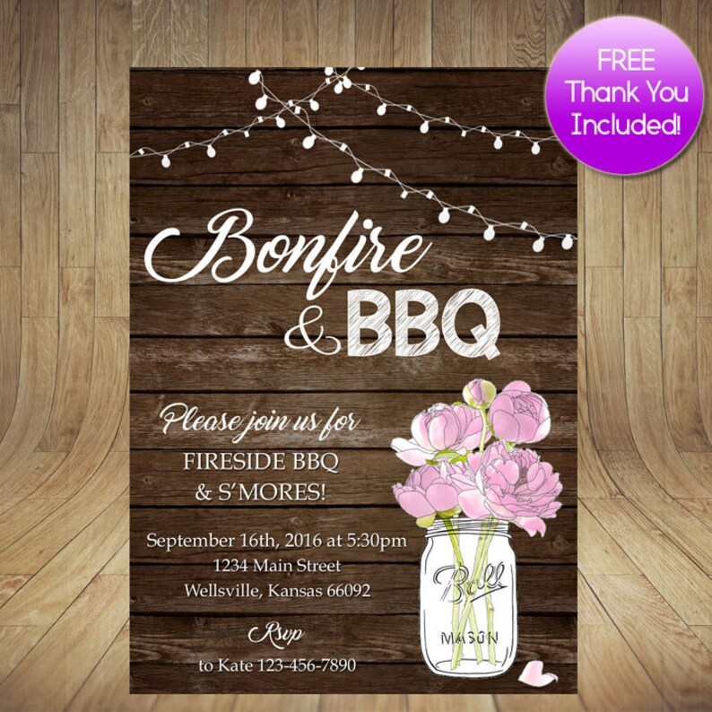 Bonfire Bbq Invitation, I DO BBQ Invitation, Rustic Mason Jar, Rustic ...