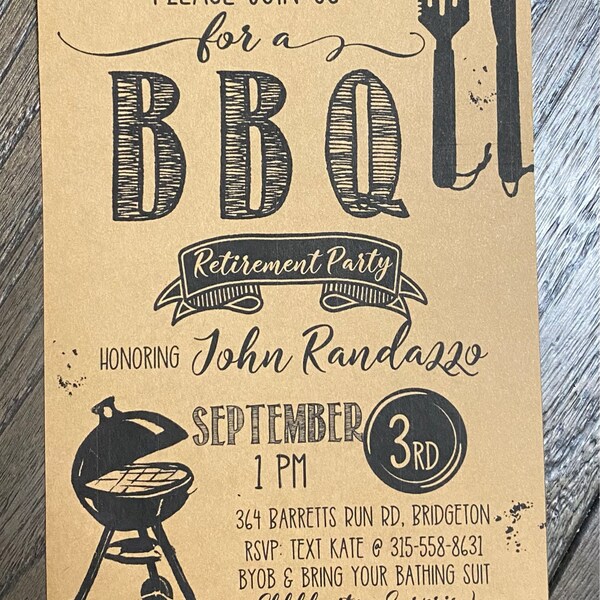 Retirement BBQ Invitation BBQ Party Invite Retire Rustic - Etsy