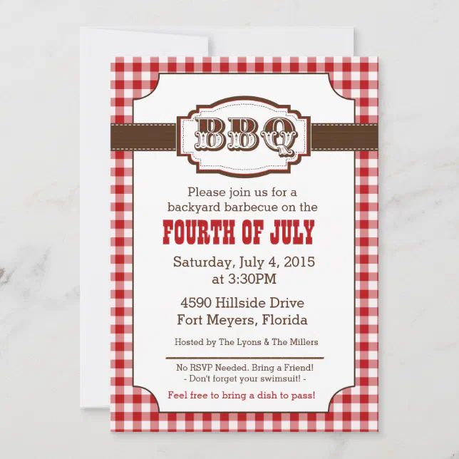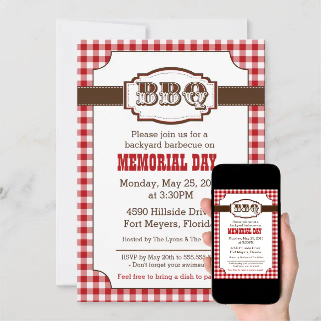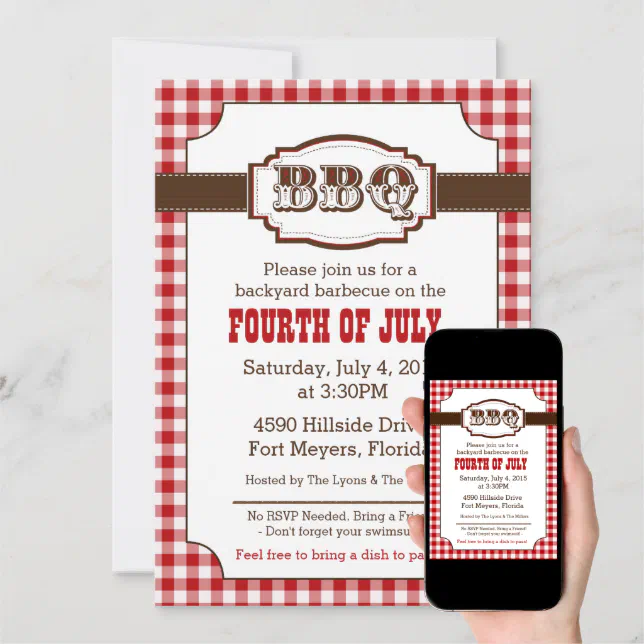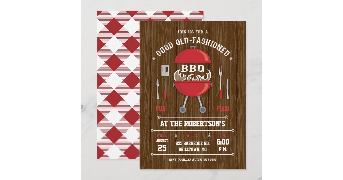 Backyard Barbecue | Rustic Red Checkered BBQ Invitation | Zazzle