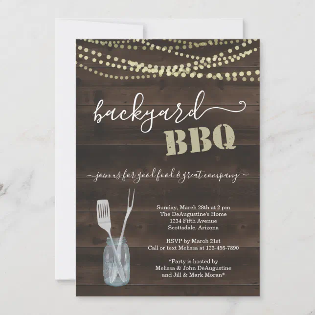 Rustic Backyard BBQ Summer Party Invitation | Zazzle
