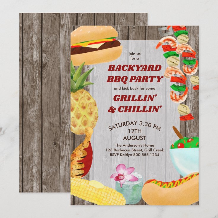 Backyard BBQ Party Rustic Chillin and Grilling Invitation | Zazzle
