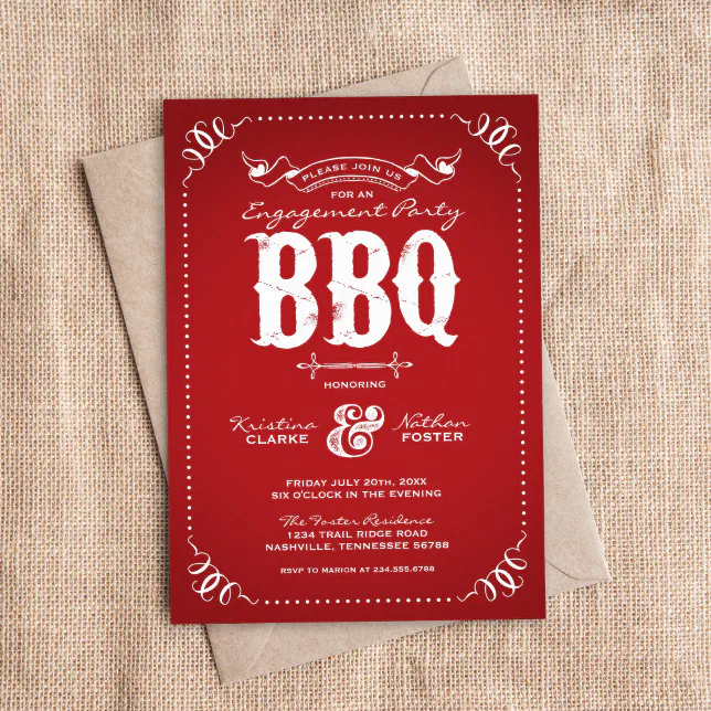 Red Rustic Engagement Party BBQ Invitation | Zazzle