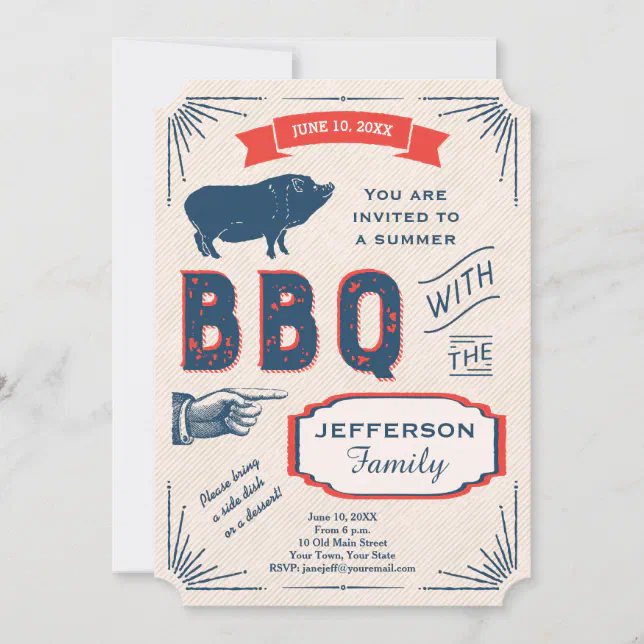 Old-Fashioned Rustic Country BBQ Barbeque Party Invitation | Zazzle