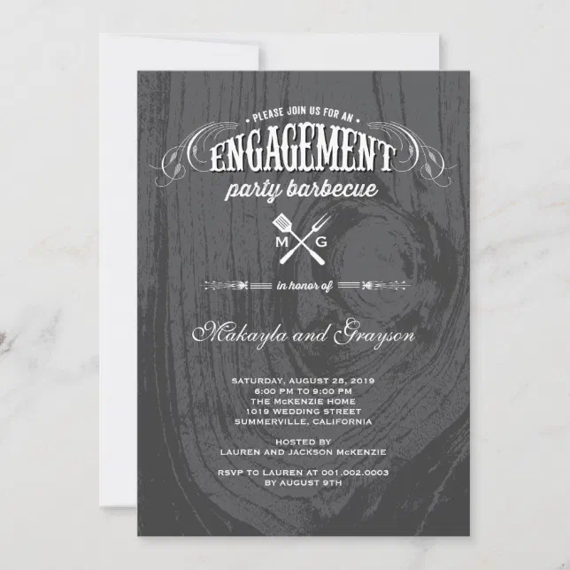 Stylish Country Rustic Wood Engagement Party BBQ Invitation | Zazzle