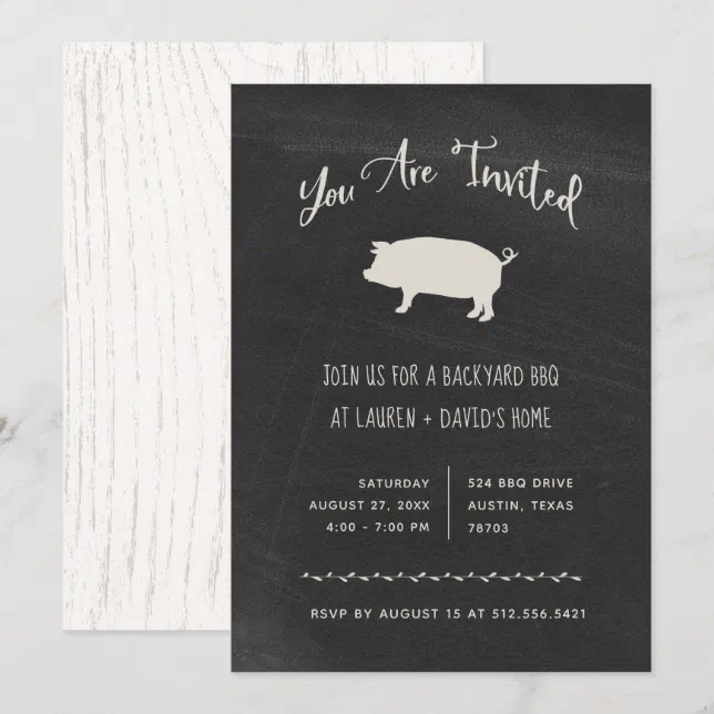 Trendy Rustic BBQ or Party | Black Chalkboard Look Invitation | Zazzle