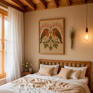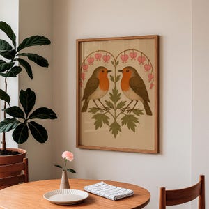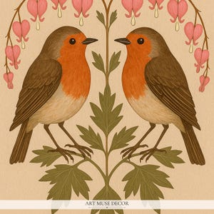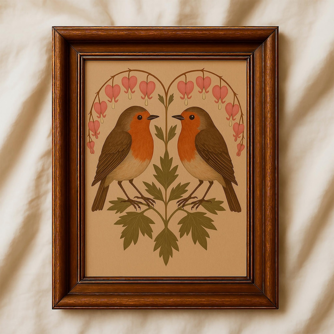 Bleeding Heart Robin Folk Art Print Vintage Bird Wall Decor Botanical ...