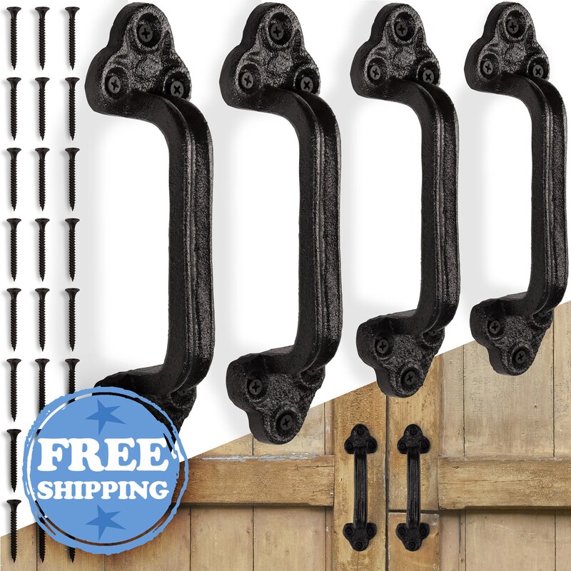 Amazon.com: Heavy Duty Barn Door Handles (Set of 2) Black Rustic Cast ...