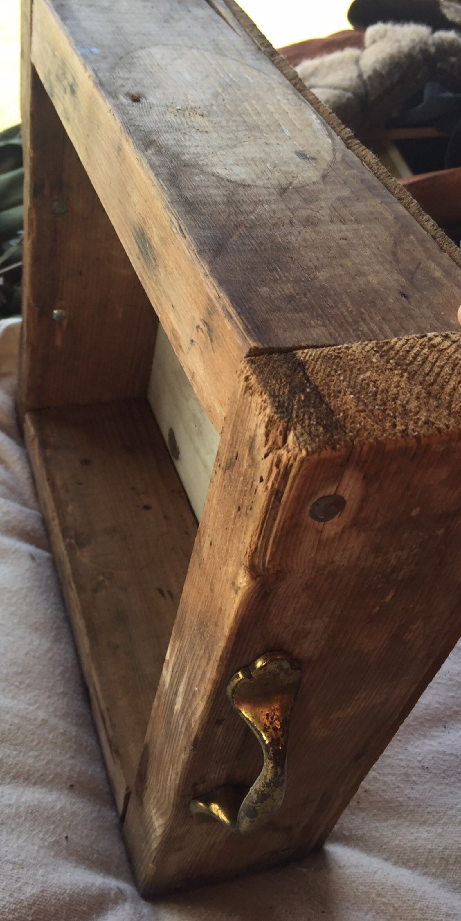 Rustic, repurposed hand crafted wooden box with antique hinges and pull ...