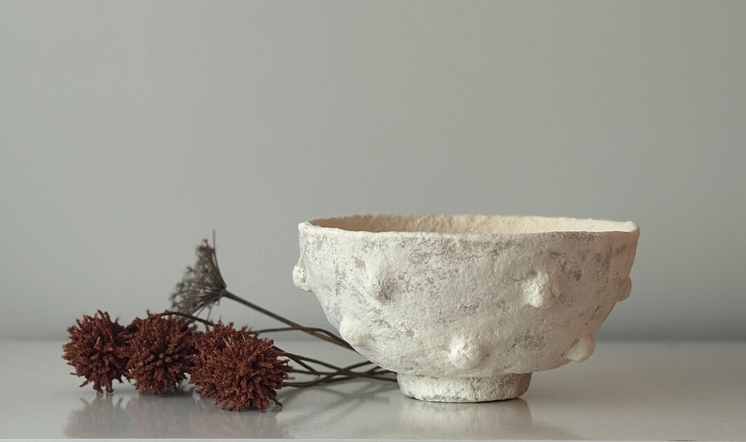 Eco-friendly Rustic Paper Mache Bowl - 3D Bumps Pattern - Medium Size ...