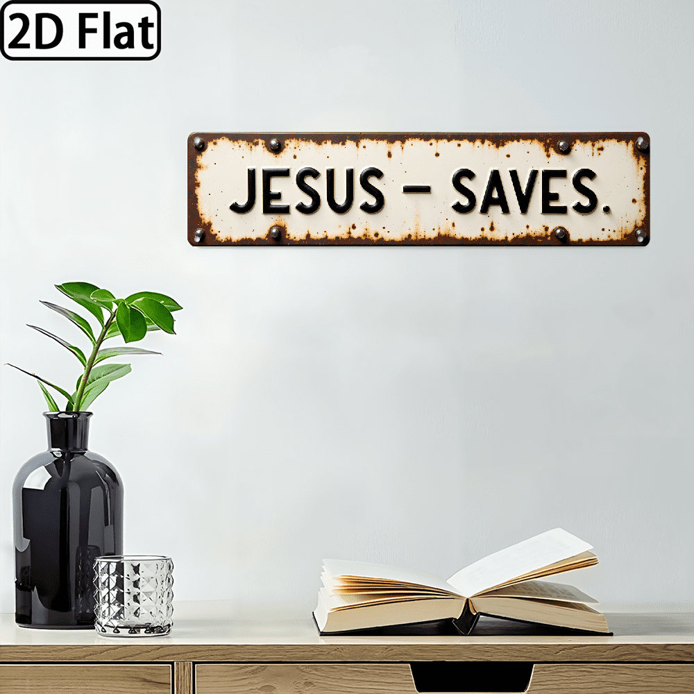 2D Flat,Jesus Saves Vintage Metal Sign - Lettering Religious Wall Art ...