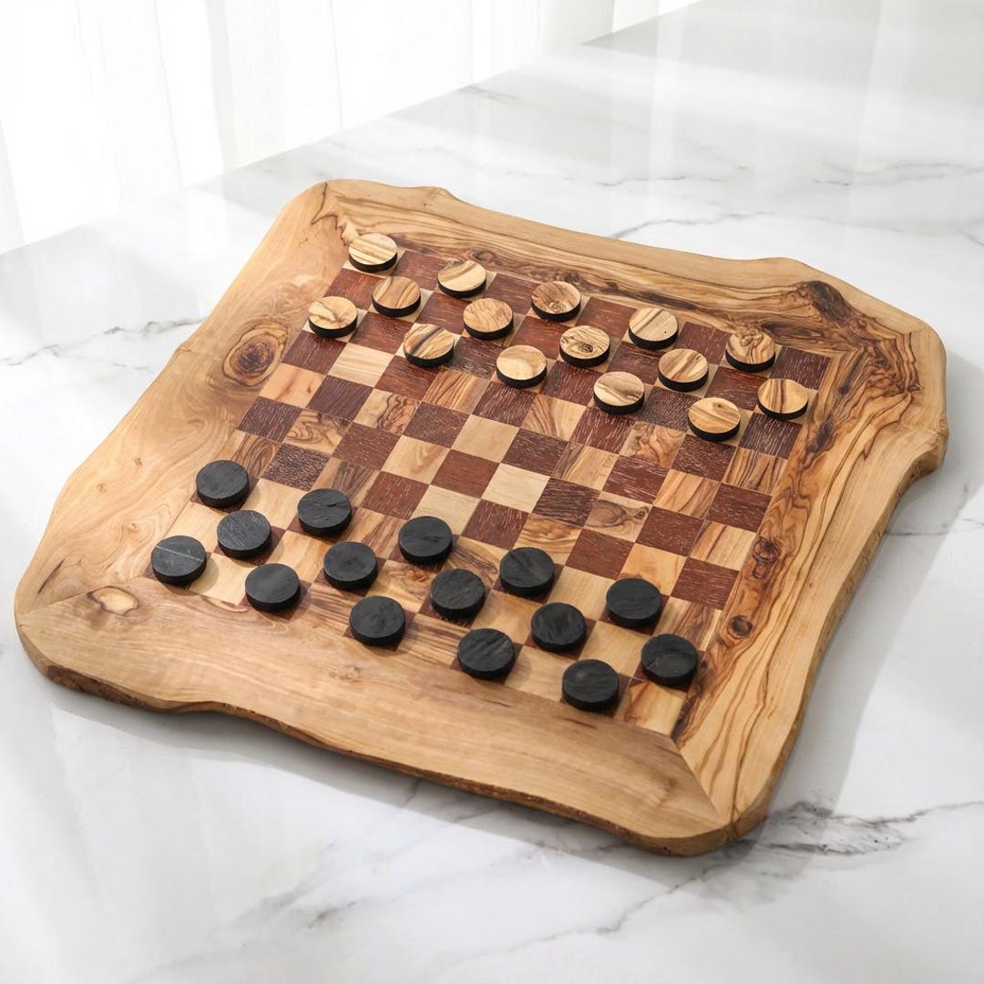 Handmade Checkerboard Live Edge Olive Wood, Checkerboard Rustic Wooden ...