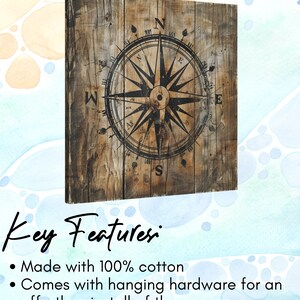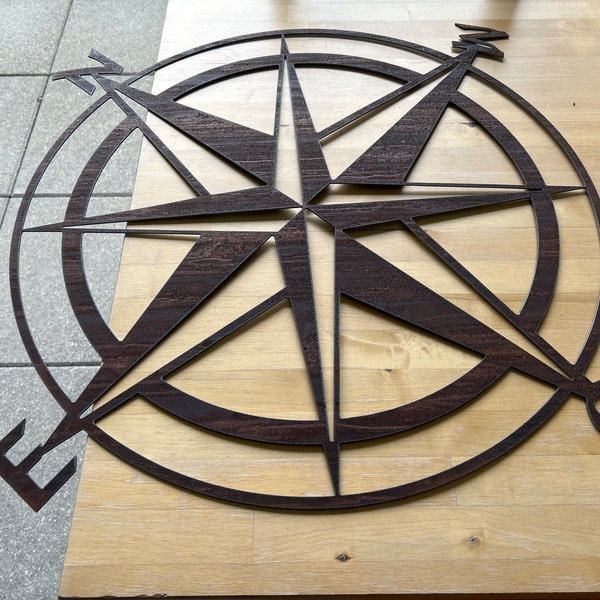 Wooden compass rose with rustic design, featuring circular frame and ...