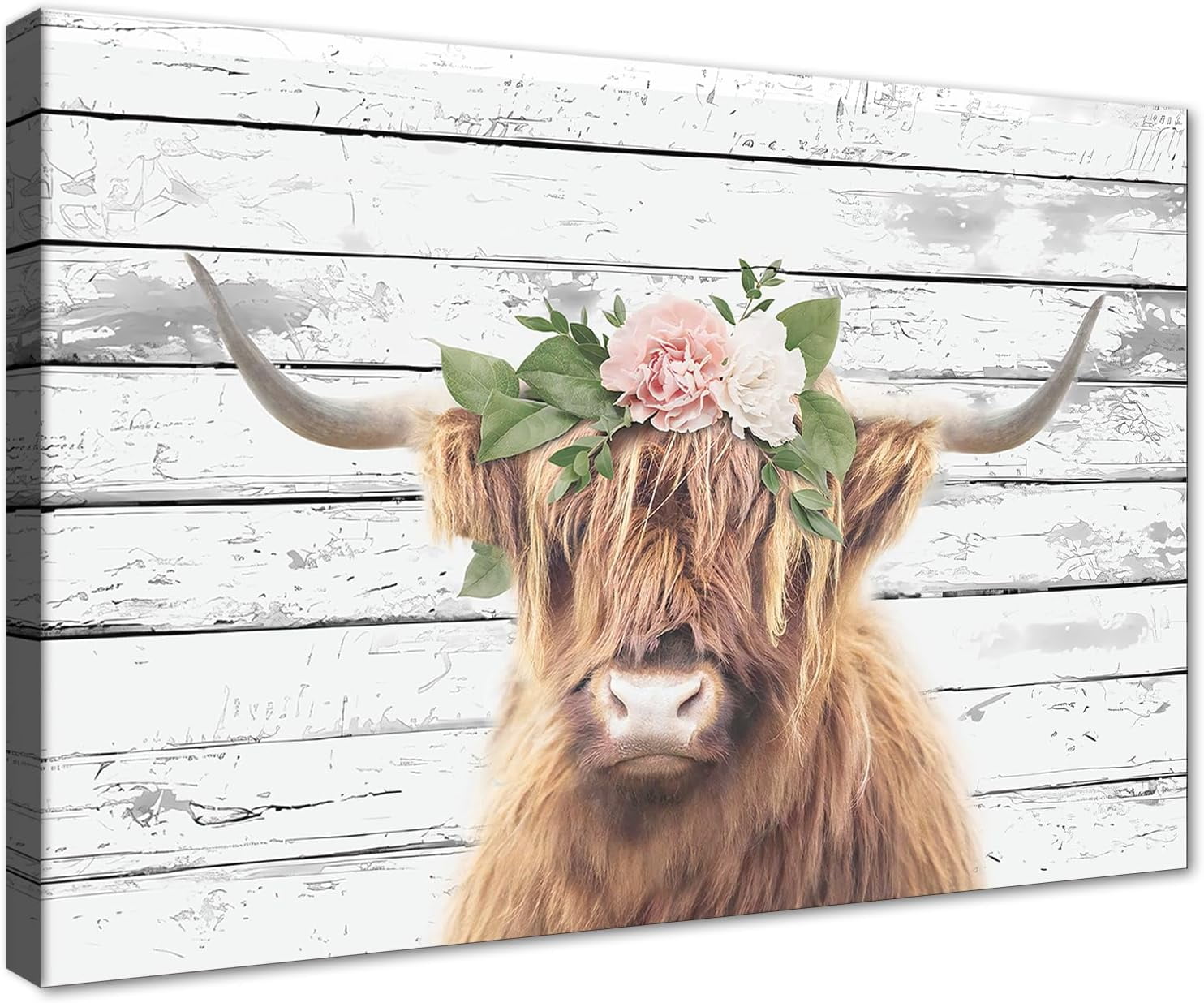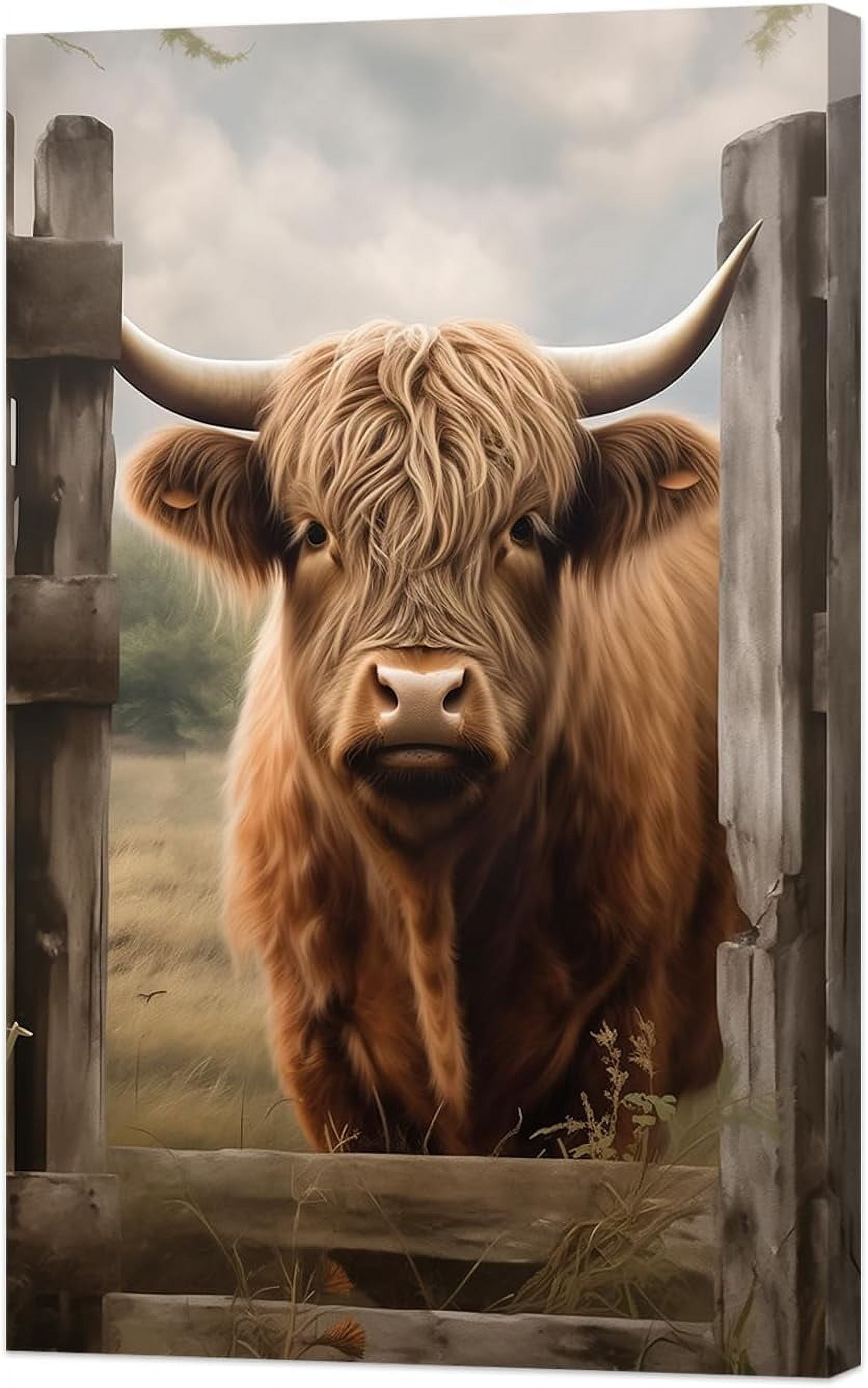 HFDF Highland Cow Canvas Wall Art Rustic Farmhouse Cow Pictures Wall ...