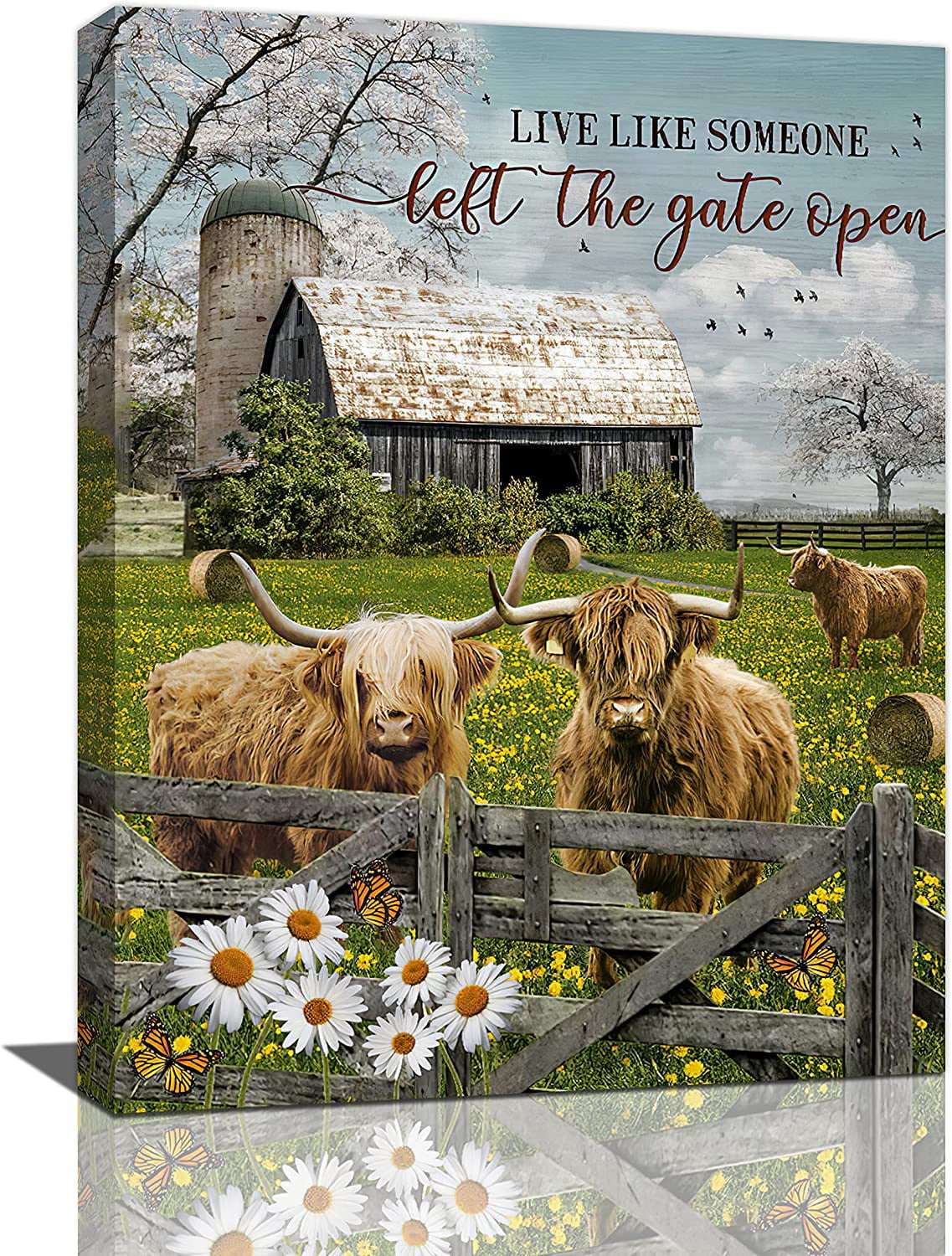 Amazon.com: DJSYLIFE Highland Cow Wall Art Farmhouse Decor Canvas ...