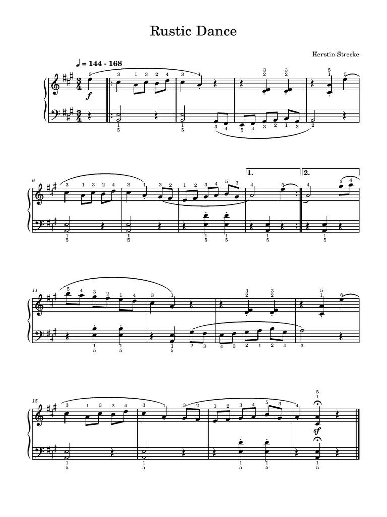 Rustic Dance sheet music for piano solo (PDF-interactive)