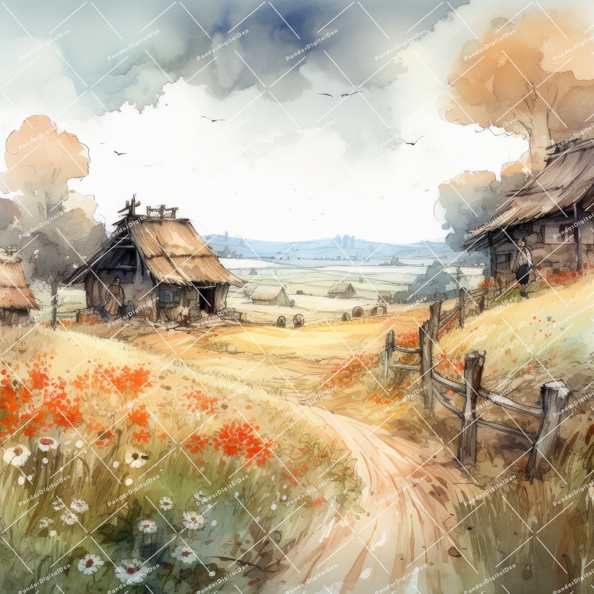 Watercolor Rustic Farm Landscapes Clipart for Digital Invitations ...
