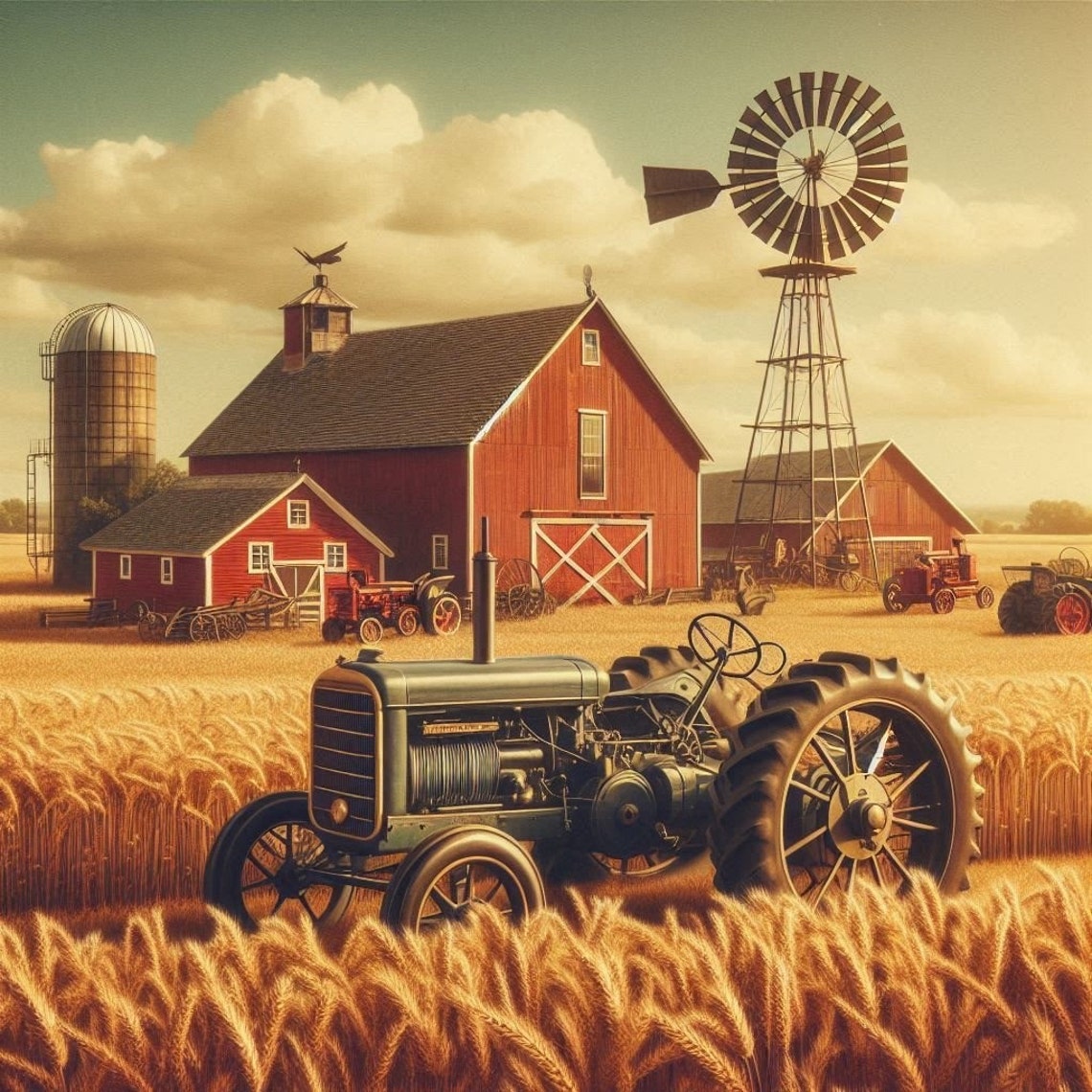 Digital Download, Modern Wall Art, Rustic Charm: Vintage Farm Scene - Etsy